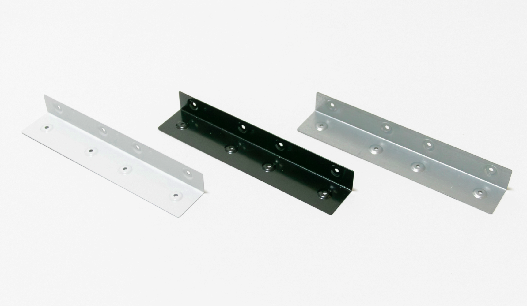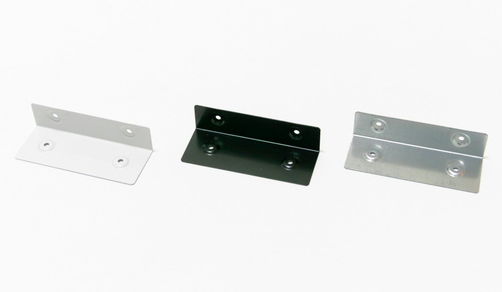 - 棚板用・角用・仕切り板用など、形状が豊富。「ここが少し弱い」と感じた部分をピンポイントで補強できます。用途に応じて、異なる形状の補強金具を使い分けられます。