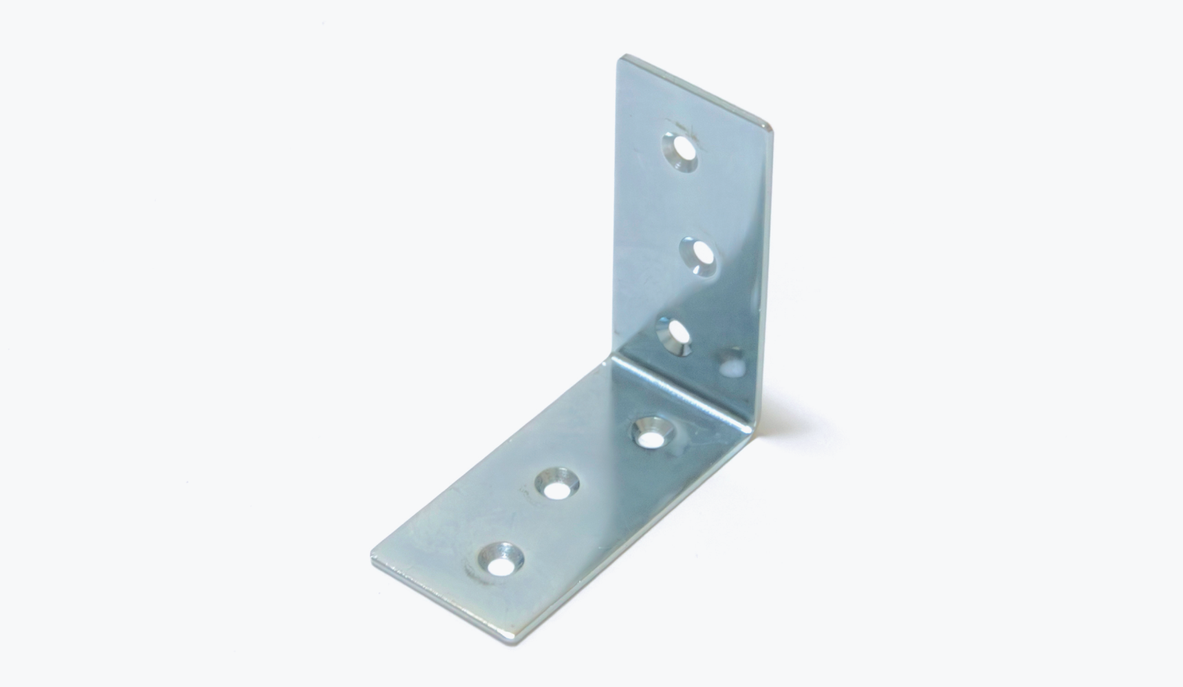 90度に曲がった、初心者から上級者まで幅広く使われる万能アイテム。棚受けやフレームの直角部分を支えるのに最適です。