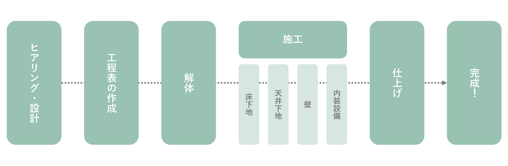ゴールがどこにあるかわからないまま走り続けば、おのずとモチベーションは下がります。一つひとつの工程にかかる時間もわからないので、「いつ終わるのだろう」と途方にくれてしまい、断念してしまうのも無理はありません。頭に描く理想の「住まい像」だけではなく、それをかたちにするための正確で緻密な設計図が、完成には不可欠といえます。