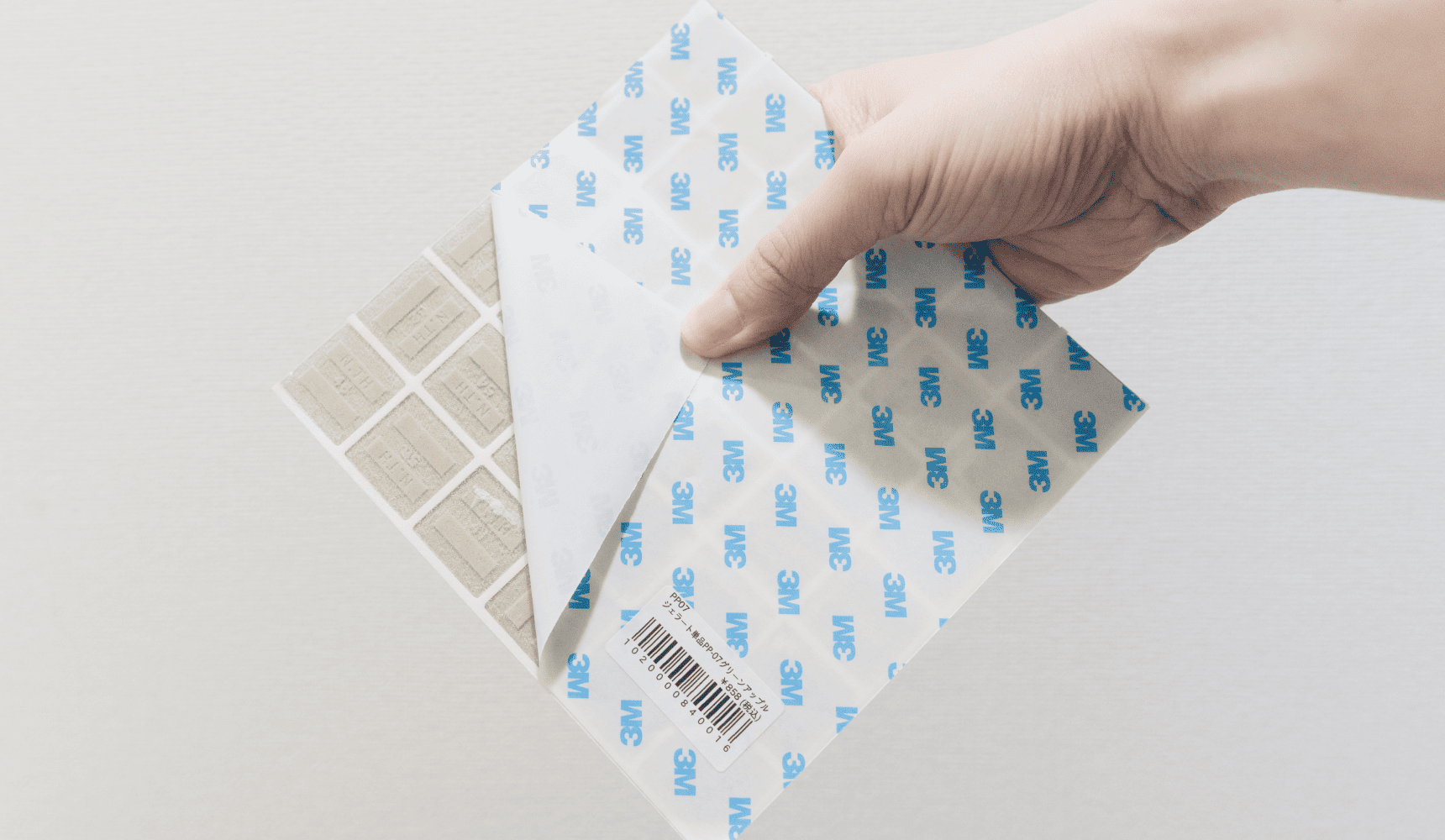 タイルシールとはタイルを模した表面の裏に、両面粘着シールが付いたリメイクアイテムのこと。設置方法はいたって簡単。台紙を剥がして、取り付け面にペタっと貼り付けるだけ。言わば空間を飾るための立体的なシールです。