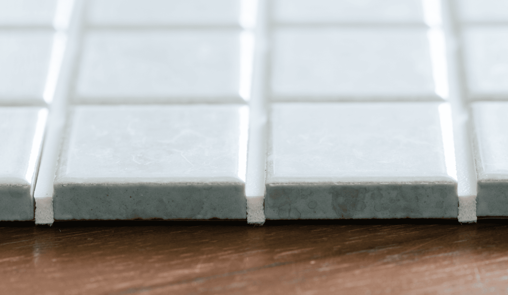 工務店など、プロによるタイル施工では、一枚一枚独立したタイル片が使われます。専用の粘着液を塗布して石膏ボードなどに接着後、隣接するタイルの間の「スキマ=目地」をモルタルなどで埋めます。