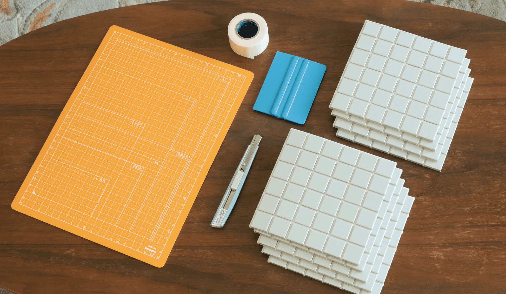 使用したもの:タイルシール10枚、カッターマット、カット、スキージー、マスキングテープ
