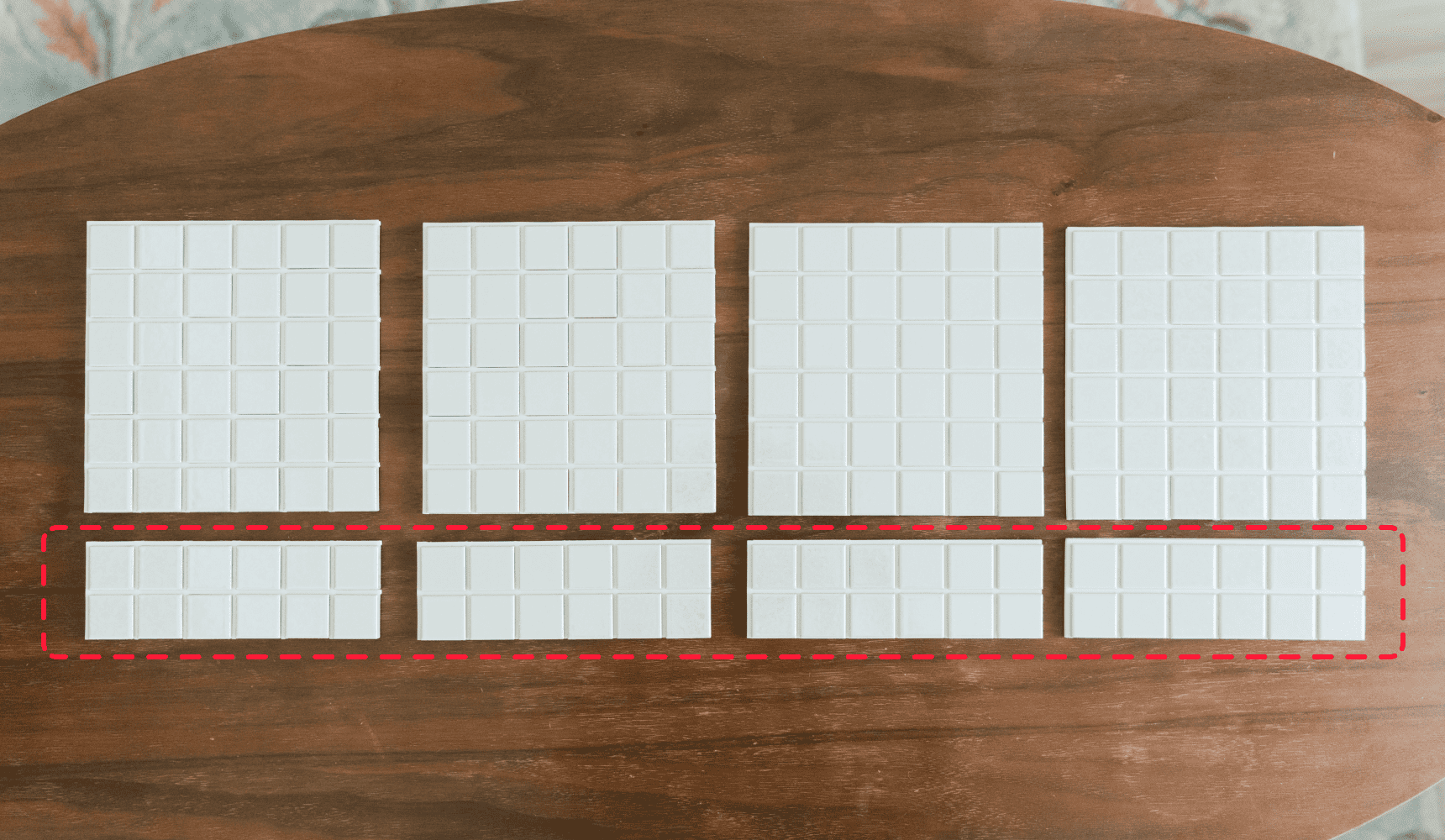 鏡下の面積に必要なタイルシールは、4枚+タイル2行分×4セット。