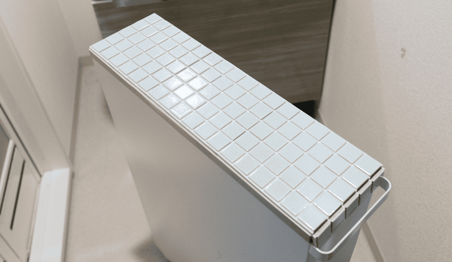 心配だった出っぱり部分は、多少ぼこっとしているものの、気にならない程度。タイルに厚さや硬さがある分、あまり影響を受けなかったのかもしれません。