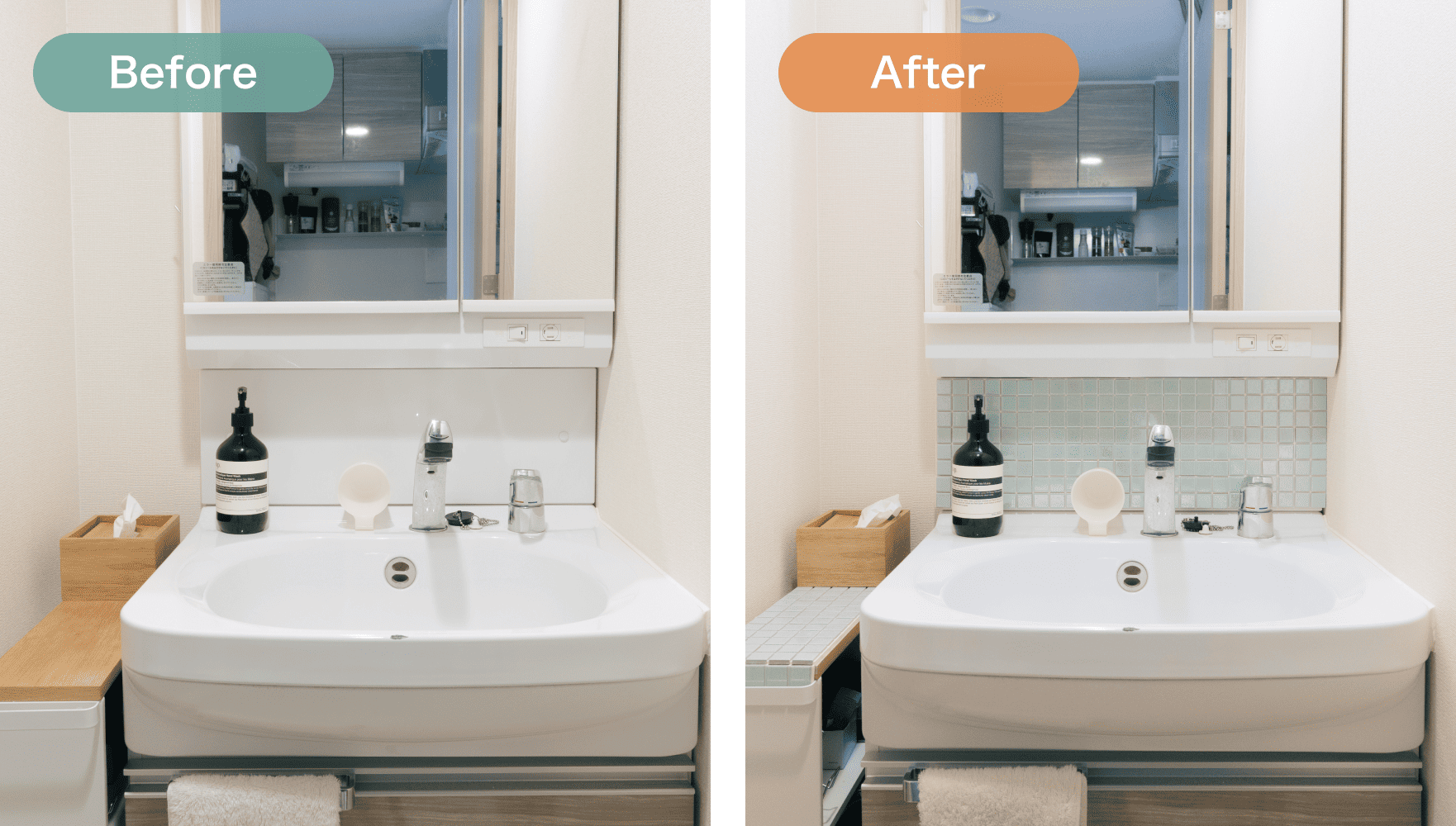貼るだけで雰囲気が変わる!「タイルシール」で洗面所をリメイク