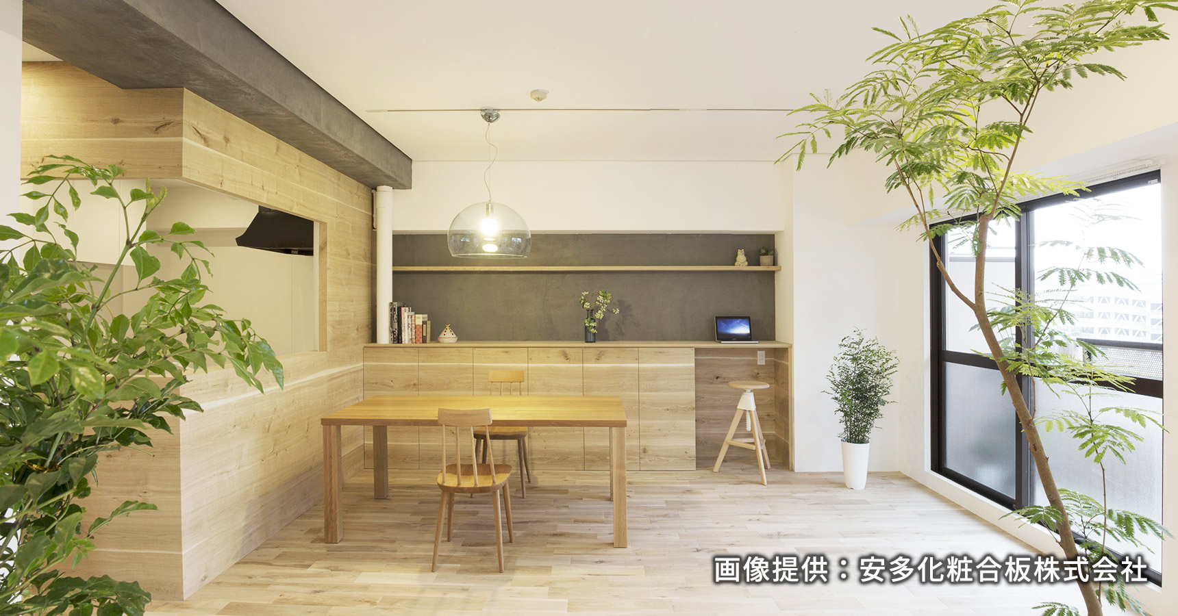 今回は数ある素材の中でも「木」に着目。大好きな木の素材を、型にはまらず自分らしくお部屋に取り入れるにはどうすればいいのでしょう。木目の楽しみ方や木の魅力について、安多化粧合板株式会社の安多茂一さんと橋本征子さんにお話を伺いました。