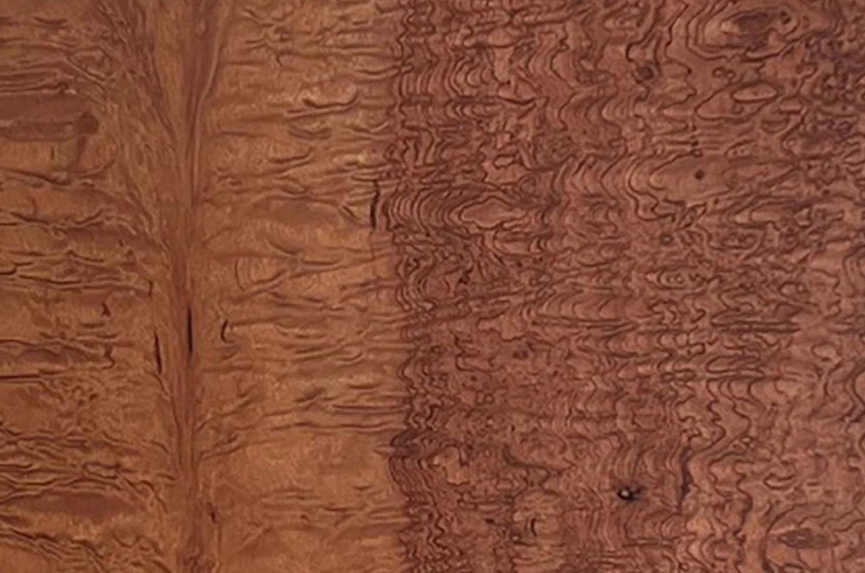 たとえば、木目に細かな並目模様がびっしり入った板があります。これは、斜面に生えた木が幹をまっすぐ天に伸ばそうとして“腹筋する”ことで生まれる痕跡。波打つような細い線は、木が必死に姿勢を正そうとした記憶そのものです。