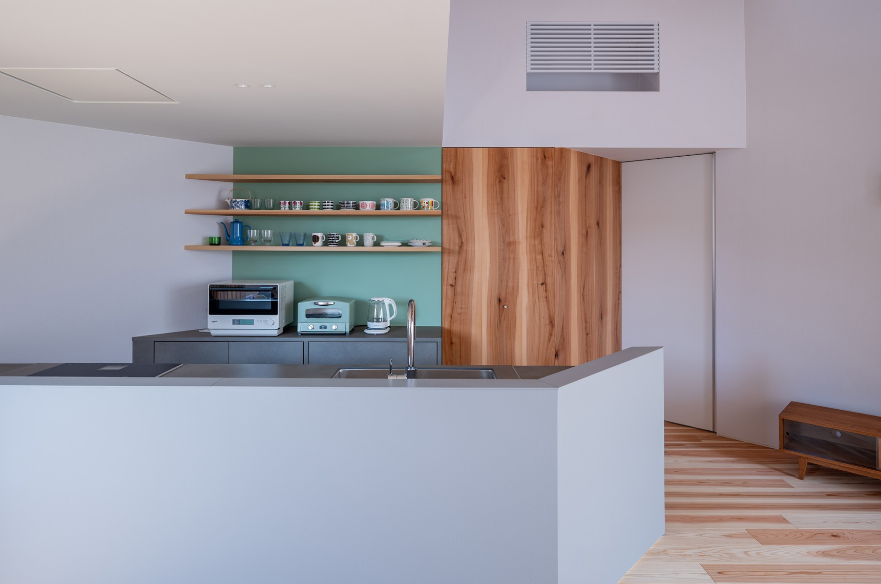 ▲ 物件名:Housein Ashiya2、設計:H& Architects & Associates、樹種:VIVO大雪山ナラ faviken style(画像提供:安多化粧合板株式会社)