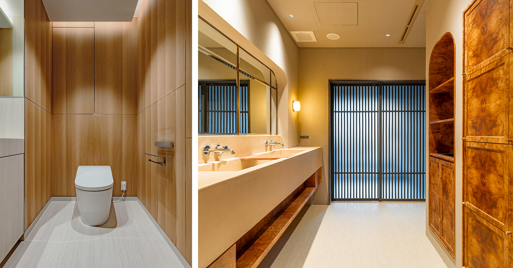 ▲ (写真左)物件名:RESIDENCE TOKYO、設計:SYMBOL + SATOSHI NOBEKAWA | 延川聡志、写真:Keishin Horikoshi/SS Inc.(写真左)物件名:Rokko Private Villa、設計:SUPER-STANDARD、写真:RiLi、樹種:カンファーバール株式会社(画像提供:安多化粧合板株式会社)