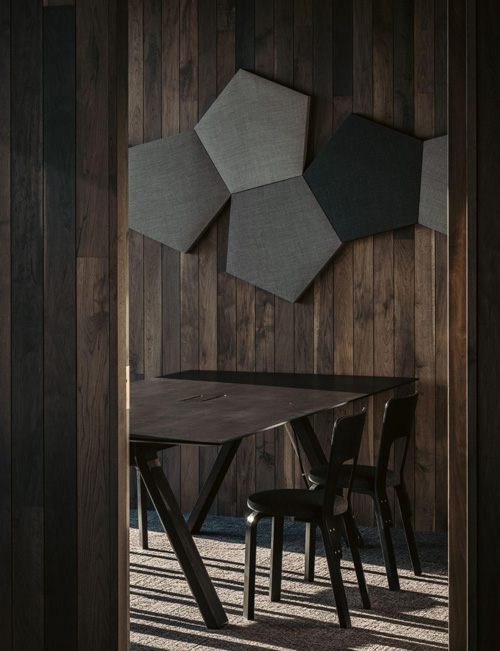 ▲ 物件名:SAKURA DEEPTECH SHIBUYA、設計:SIGNAL、写真:Tomooki Kengaku、樹種名:ナラ枯れ(鉄媒染)(画像提供:安多化粧合板株式会社)