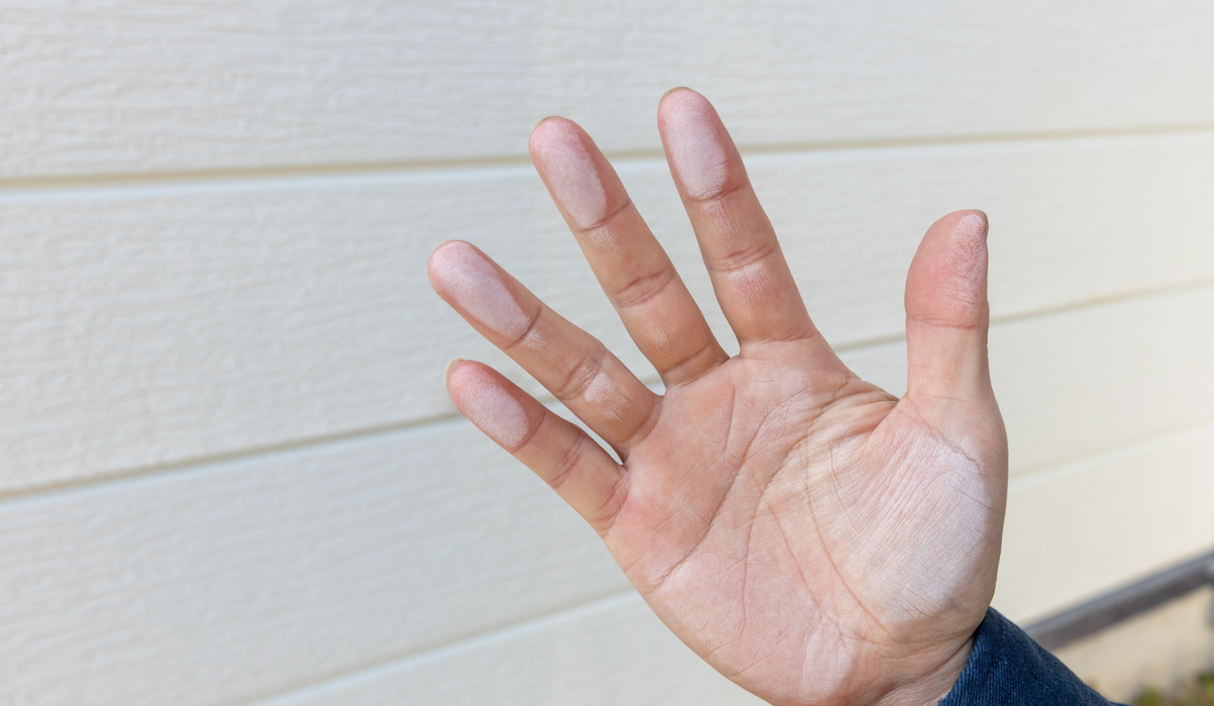 外壁を触ってみて手が白くなるのは「チョーキング現象」と言われ、劣化している証拠です。そろそろ塗り直さなければいけない時期でしょう。
