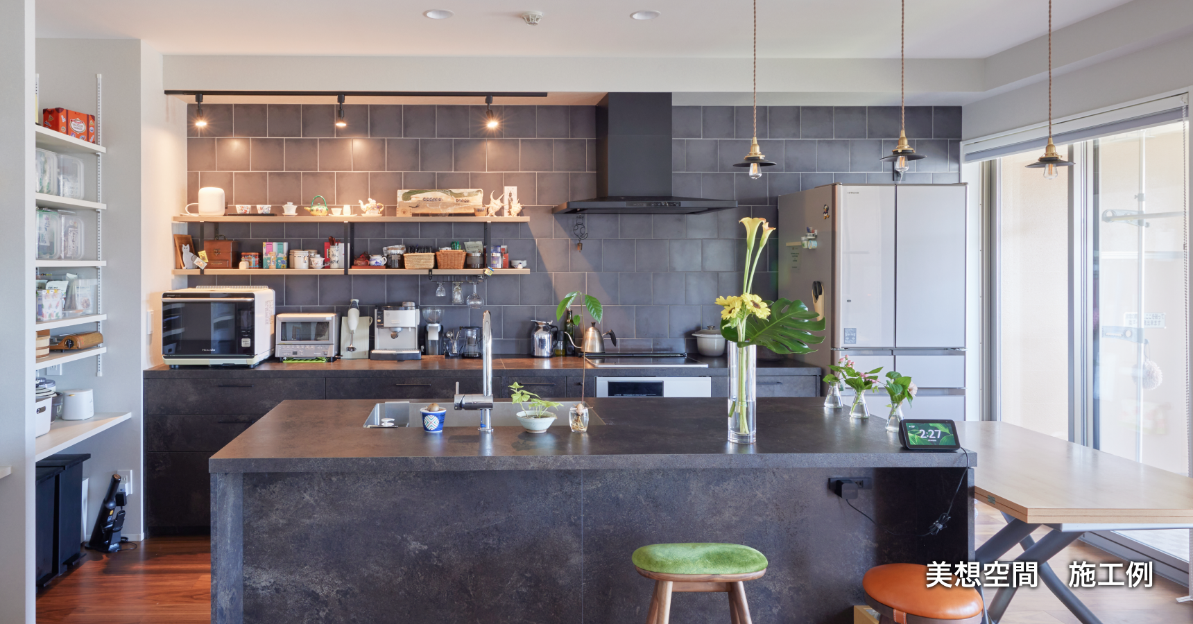 ▲ キッチンの壁の一面をタイルに。高級感がありスタイリッシュ(美想空間 施工例)