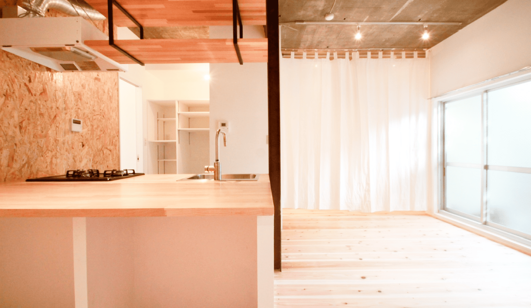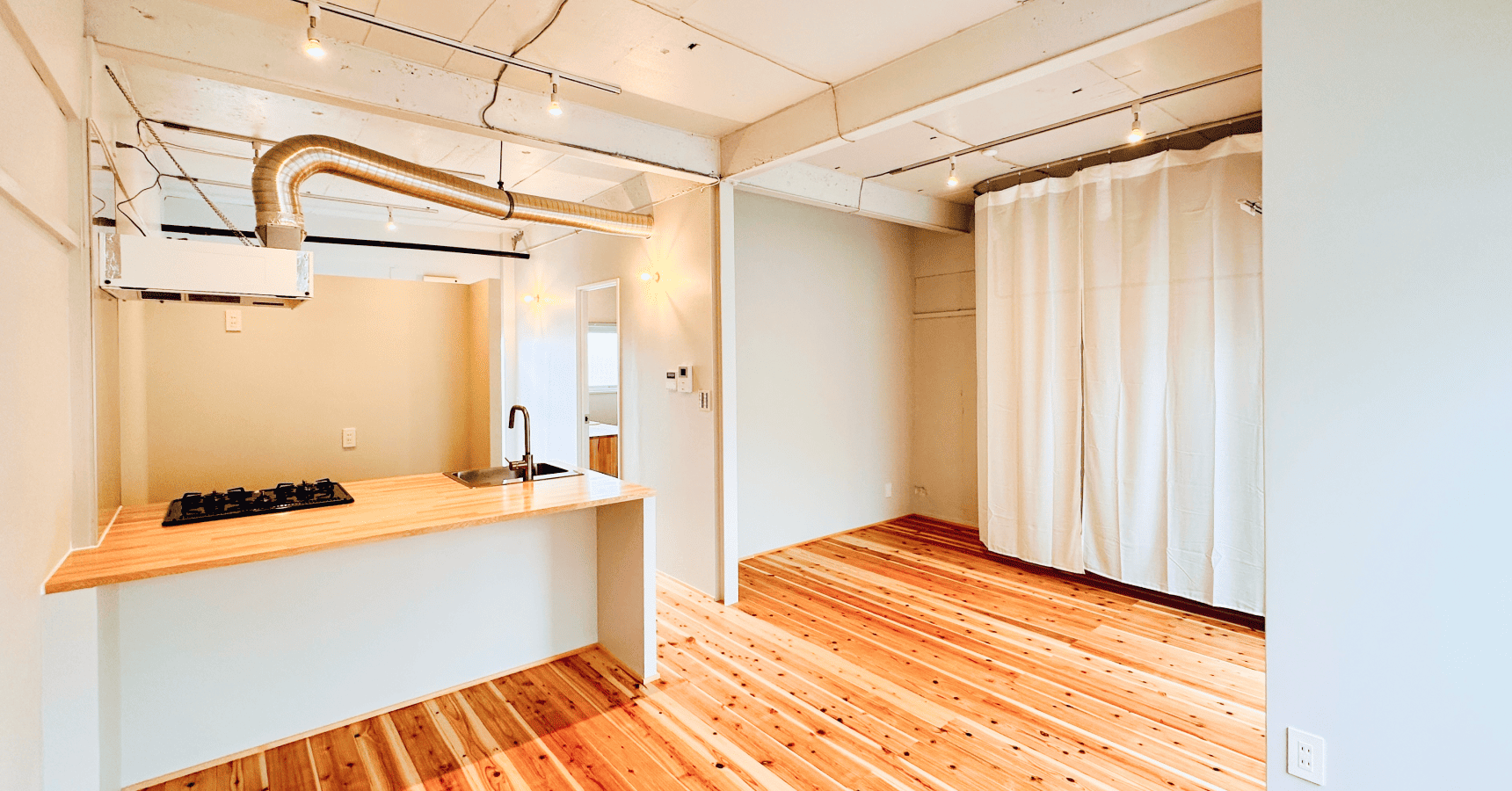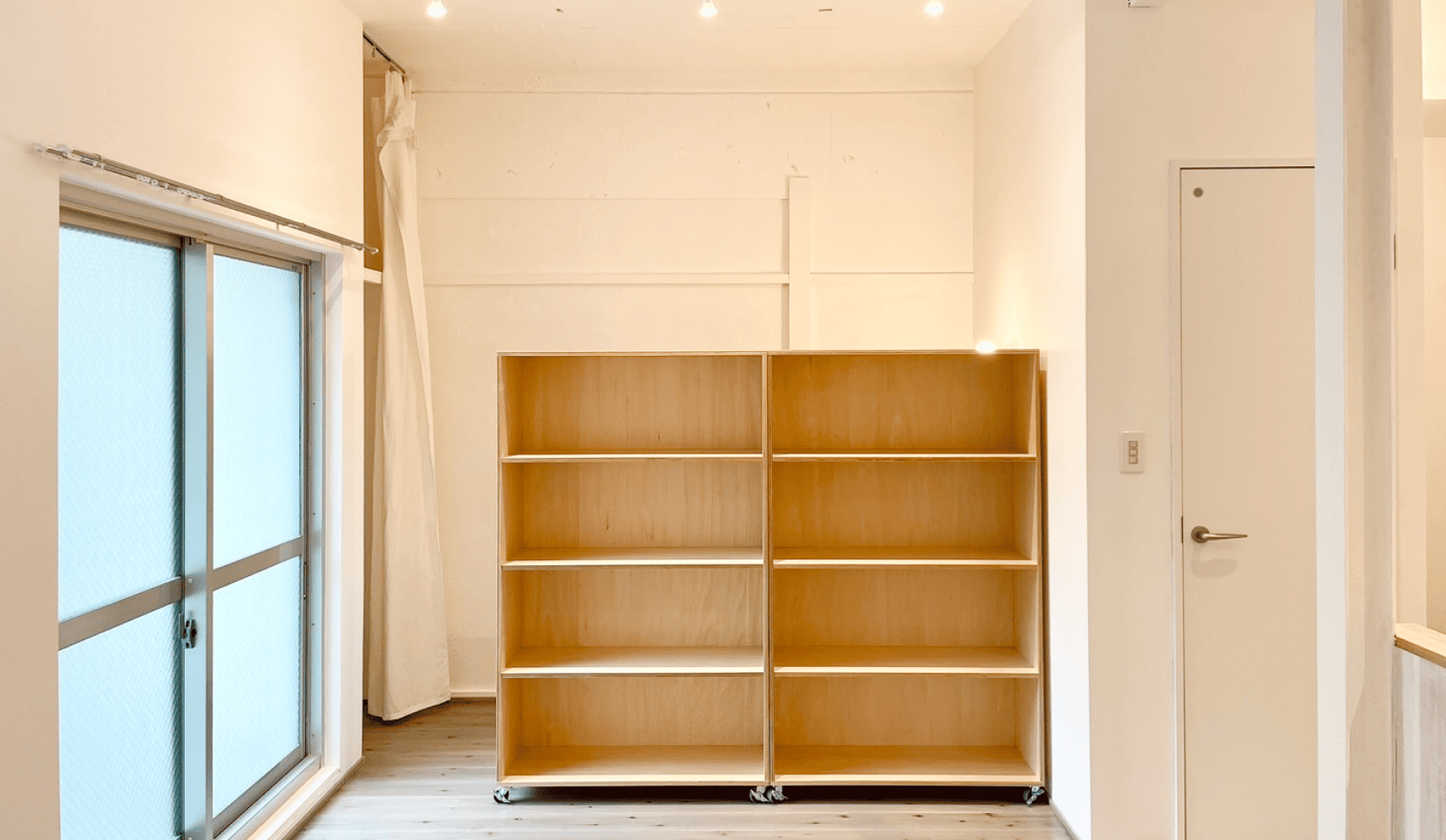 ポイント2:天井にカーテンレールを取り付けて、個人の集中スペースに